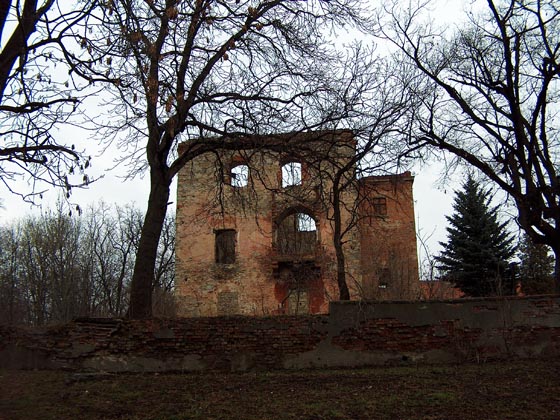 Ruiny stoj± na terenie byłego Zakładu Do¶wiadczalnego Instytutu Krajowych Włókien Naturalnych w Białobrzeziu.
