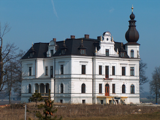 Przepiêkny pa³ac w Biskupicach po³o¿ony jest nieopodal autostrady A4, przy zje¼dzie na Kostom³oty. Wybudowny na planie kwadratu, z naro¿ną wie¿yczką. Pa³ac jest trójkondygnacyjny, podpiwniczony, kryty dachem spadowy.