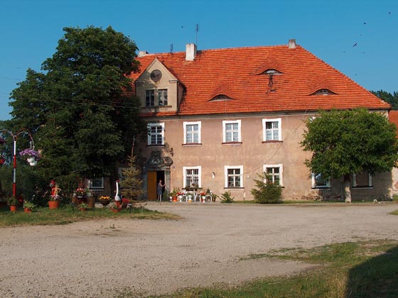 Kolejny, równie piękny dwór znajduje się kilkaset metrów za swoim poprzednikiem. Jest to obiekt trójkondygnacyjny, kryty dachem czterospadowym na którym znajduje się stary zegar. Elewacja frontowa - dziewięcioosiowa, elewacje boczne trójosiowe.