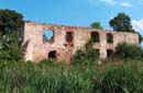 Ruiny znajdują się na wyspie otoczonej fosą. Dwór powstał na podstawie kwadratu, posiadał dwie kondygnacje i nakryty był dachem dwuspadowym. Założenie jest murowane, zbudowane głównie z cegły.