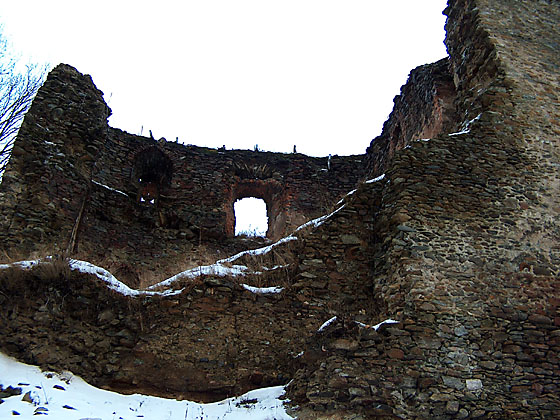 Kamienne założenie znajdujące się na wzgórzu składało się najpewniej z budynku mieszkalnego, dziedzińca i bramy, a całość była otoczona kamiennym murem i fosą. W późniejszym okresie wybudowano nowy budynek mieszkalny, łączący się z widoczną do dziś wieżą.