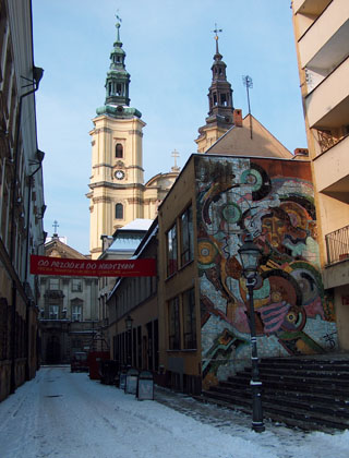 Spośród zabytków należy wymienić wspomniany wcześniej zamek obronny, opisywany jednak szerzej w dziale "Zamki i warownie", dawny ratusz a obecnie teatr powstały w latach 1737 - 1741, kramy śledziowe - zespół kamieniczek z XVI w., katedra św. Piotra i Pawła wzniesiona w latach 1328 - 1378, przebudowana w 1894 r., kościół św. Jana pochodzący z lat 1714 - 1729 z barokowym wyposażeniem wnętrz.