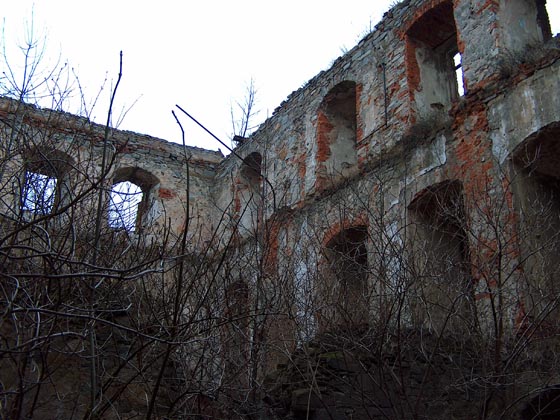 Ruiny stoj± na terenie byłego Zakładu Do¶wiadczalnego Instytutu Krajowych Włókien Naturalnych w Białobrzeziu.
