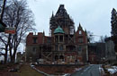 Pałac posiada 3 kondygnacje, ma bardzo rozbudowane ozdoby zewnętrzne (wieżyczki, wykusze, rzeźby), mocno zniszczony, obecnie jest w trakcie odbudowy. Pałac otoczony jest prawie dookoła ogromnymi budynkami mieszkalnymi z wieżycami wejściowymi w narożach.