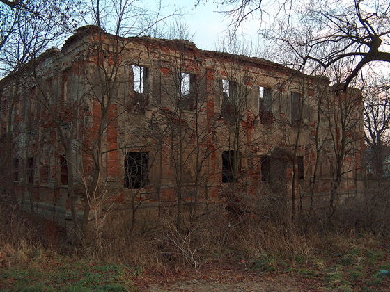 Kiedyś istniał tutaj renesansowy zamek nawodny. W XVII w. powstało renesansowe założenie pałacowe, przebudowane w 1720 r. na barokowy styl. W 1945 r. pałac został poważnie zniszczony i do dzisiaj popada w coraz to większą ruinę.