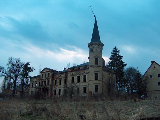We wsi znajdują się ruiny neogotyckiego pałacu pochodzącego prawdopodonie z XIX w. Elewacja frontowa jest dwunastoosiowa z trójosiowym ryzalitem. Fasada tylna jest czternastoosiowa z dwoma trójosiowymi ryzalitami. Od północnej strony pałacu znajduje się cylindryczna wieżyczka.