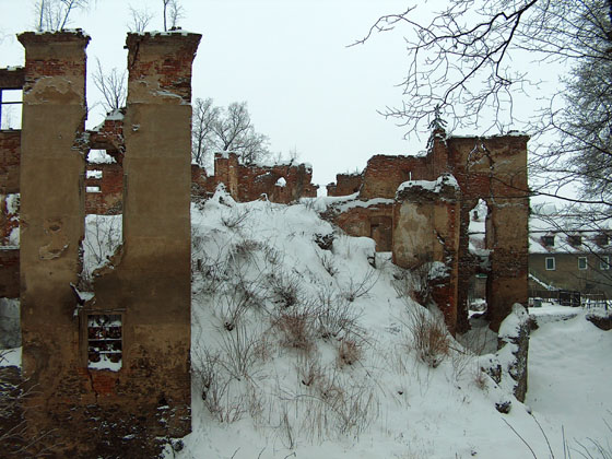 Początkowe założenie dzisiejszych ruin to średniowieczny zamek, rozbudowany w bardziej reprezentacyjnym stylu w XVII wieku. Zamek powstał na planie koła, otoczony był fosą, a nad całością górowała wysoka wieża. Ruiny zostały prawdopodobnie kupione przez prywatnego właściciela.