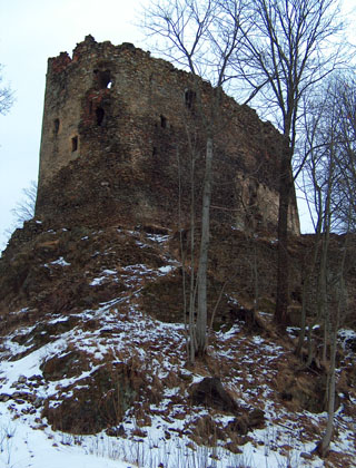 Kamienne założenie znajdujące się na wzgórzu składało się najpewniej z budynku mieszkalnego, dziedzińca i bramy, a całość była otoczona kamiennym murem i fosą. W późniejszym okresie wybudowano nowy budynek mieszkalny, łączący się z widoczną do dziś wieżą.