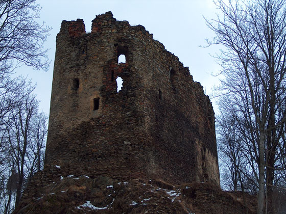 Kamienne założenie znajdujące się na wzgórzu składało się najpewniej z budynku mieszkalnego, dziedzińca i bramy, a całość była otoczona kamiennym murem i fosą. W późniejszym okresie wybudowano nowy budynek mieszkalny, łączący się z widoczną do dziś wieżą.